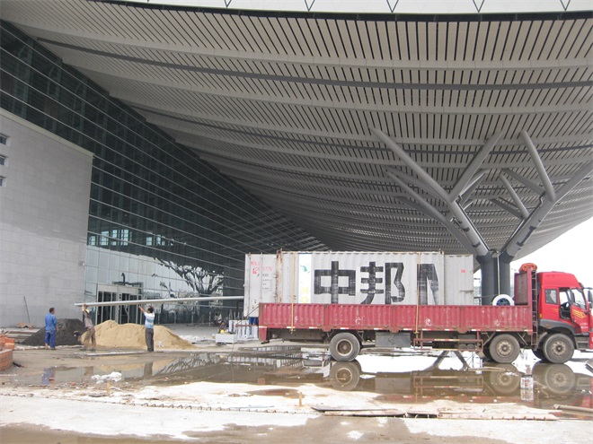 2016.7.16日,常宇彩鋼YX65-400直立鎖邊設(shè)備裝車出廠,前往長沙武廣高鐵站現(xiàn)場加工YX65-400型鋁鎂錳板。板長達(dá)30米。