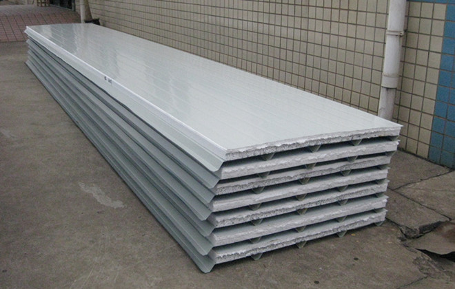 瓦愣夾芯板也稱復合板,是由彩色鋼板作表層,閉孔自熄型聚苯乙烯泡沫做芯板,通過上海希明全自動化連接成型機將彩色鋼板成型后,用高強度粘合劑粘合而成的一種高效新型復合建筑材料。