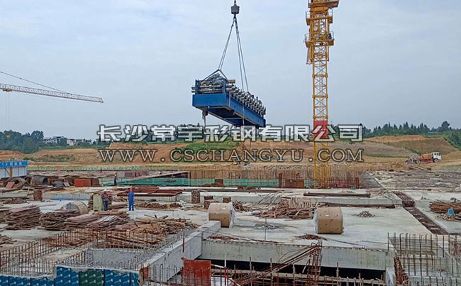 常宇彩鋼赴湘西龍山高鐵站現(xiàn)場加工鋁鎂錳金屬屋面板!