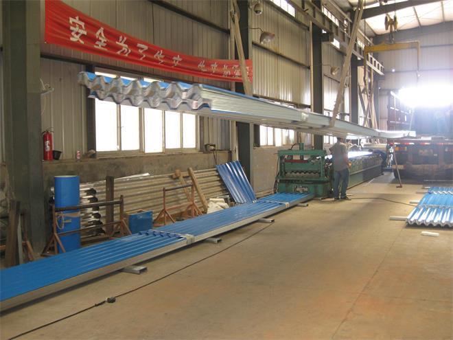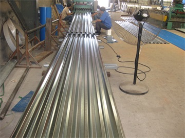 750樓承板生產(chǎn)中 0.8mm厚 板長13米