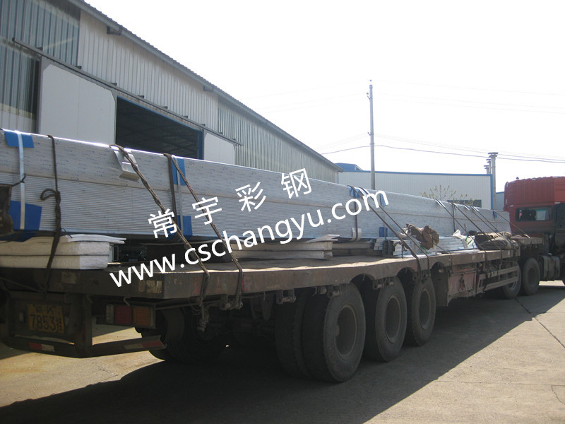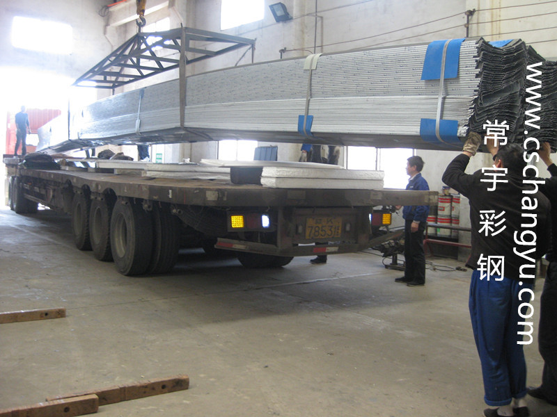 圖為長沙常宇彩鋼直立鎖邊鋁鎂錳板出貨,準備前往工地現(xiàn)場。