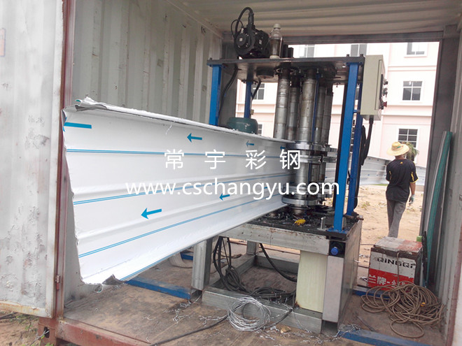 長(zhǎng)沙常宇彩鋼至海南三亞現(xiàn)場(chǎng)加工直立鎖邊鋁鎂錳屋面板