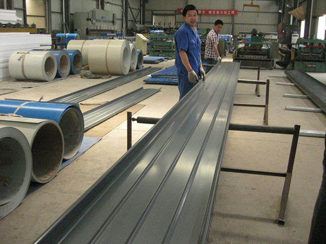 直立鎖邊通過使用專業(yè)的立邊高度65mm和咬合設備,在沿著板條長度方向上將兩塊板的立邊進行咬合,從而將屋面或墻面連接成為一個整體。系統(tǒng)不需要打膠,100%結構性防水。